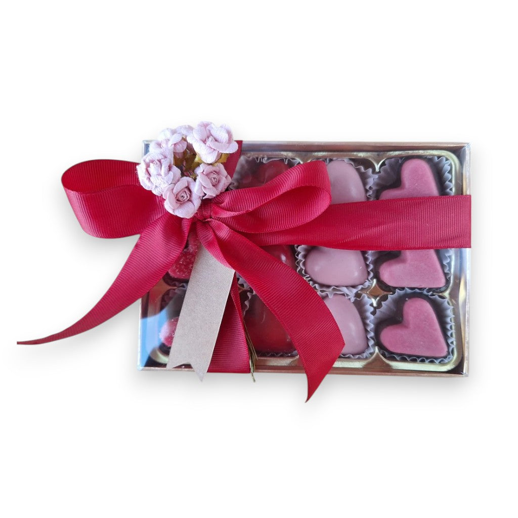 Make every moment unforgettable with Helen’s Heart-Shaped Chocolates Box – a charming blend of sophistication and sweetness. Featuring 12 handcrafted heart-shaped chocolates in indulgent flavours, each bite promises a luxurious taste experience. Beautifully presented with a vibrant red ribbon, it’s a gift that speaks straight from the heart.