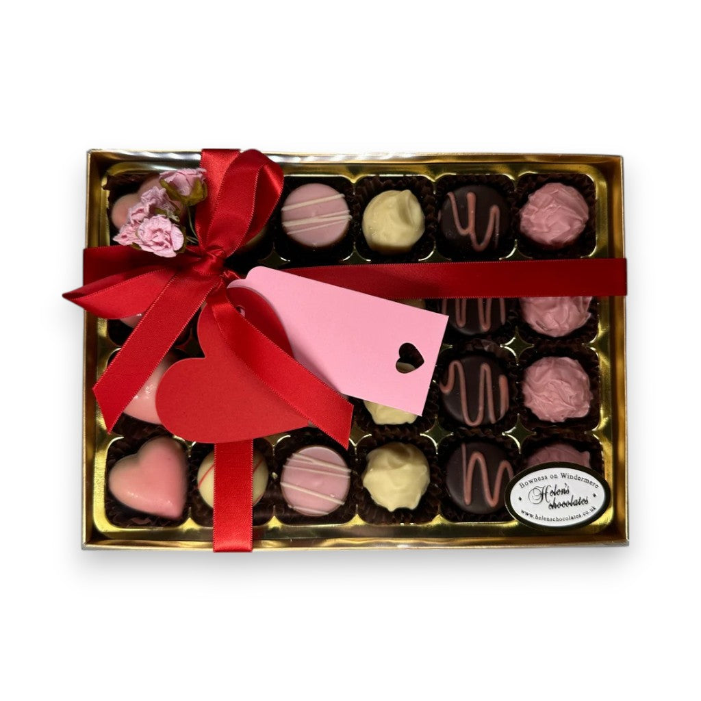 Celebrate love with Helen's Special Valentine Assorted Chocolate Collection. This exquisite selection features 24 handcrafted chocolates in a variety of irresistible flavours, each crafted to perfection. Beautifully packaged for the season, it’s an elegant gift that’s sure to impress and create sweet memories on Valentine’s Day.